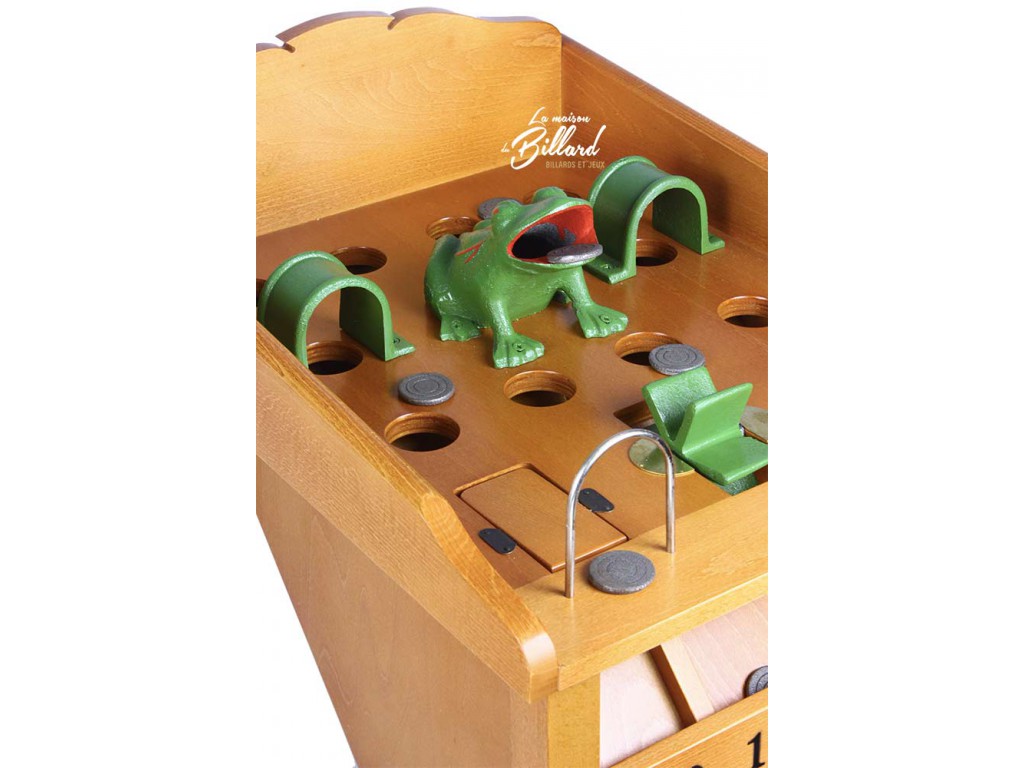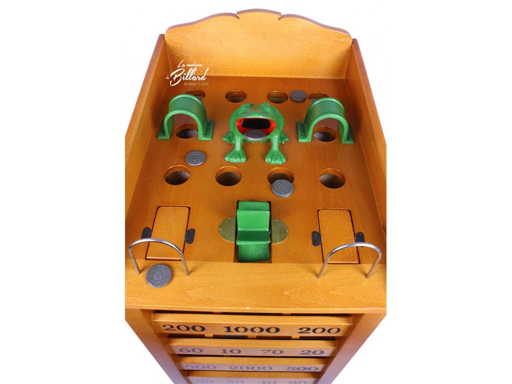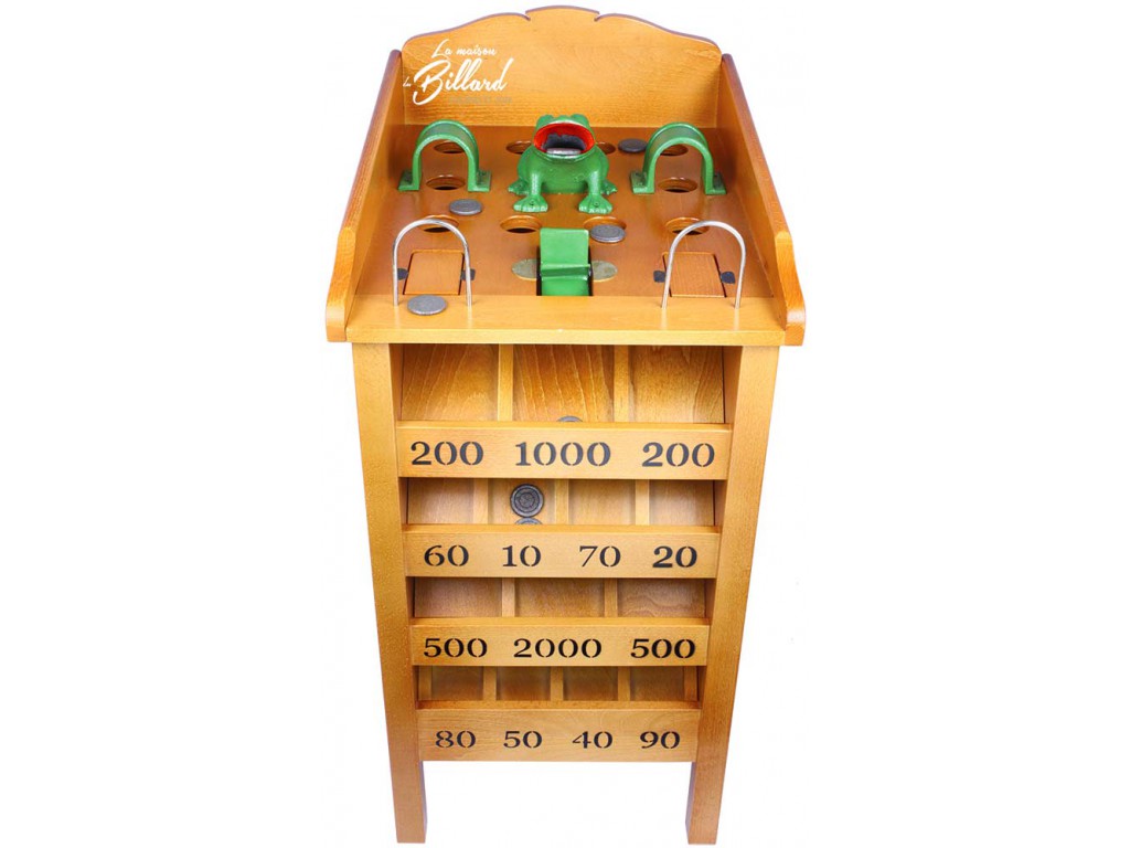 A chaque trou correspond un casier avec un nombre de points. La grenouille aboutissant bien sûr au nombre de points le plus élevé (2000).