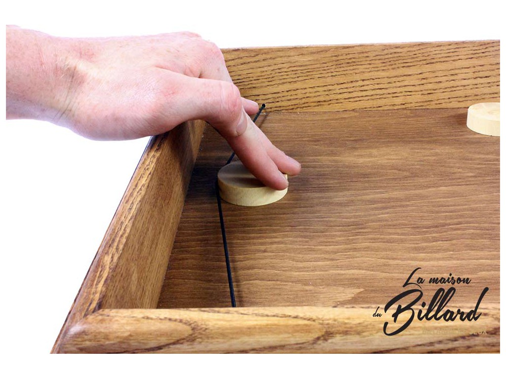 Le gagnant est le premier qui parvient à vider son camp de tous les palets à l’aide de l’élastique.